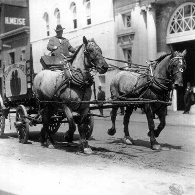 The wagon shown in the photograph has the words “Fiss, Doerr & Carroll Horse