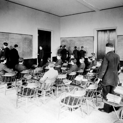 Photo of City College class being held in the original Free Academy building on East 23rd Street shortly before CCNY moved to its present St. Nicholas Heights campus in 1907.
